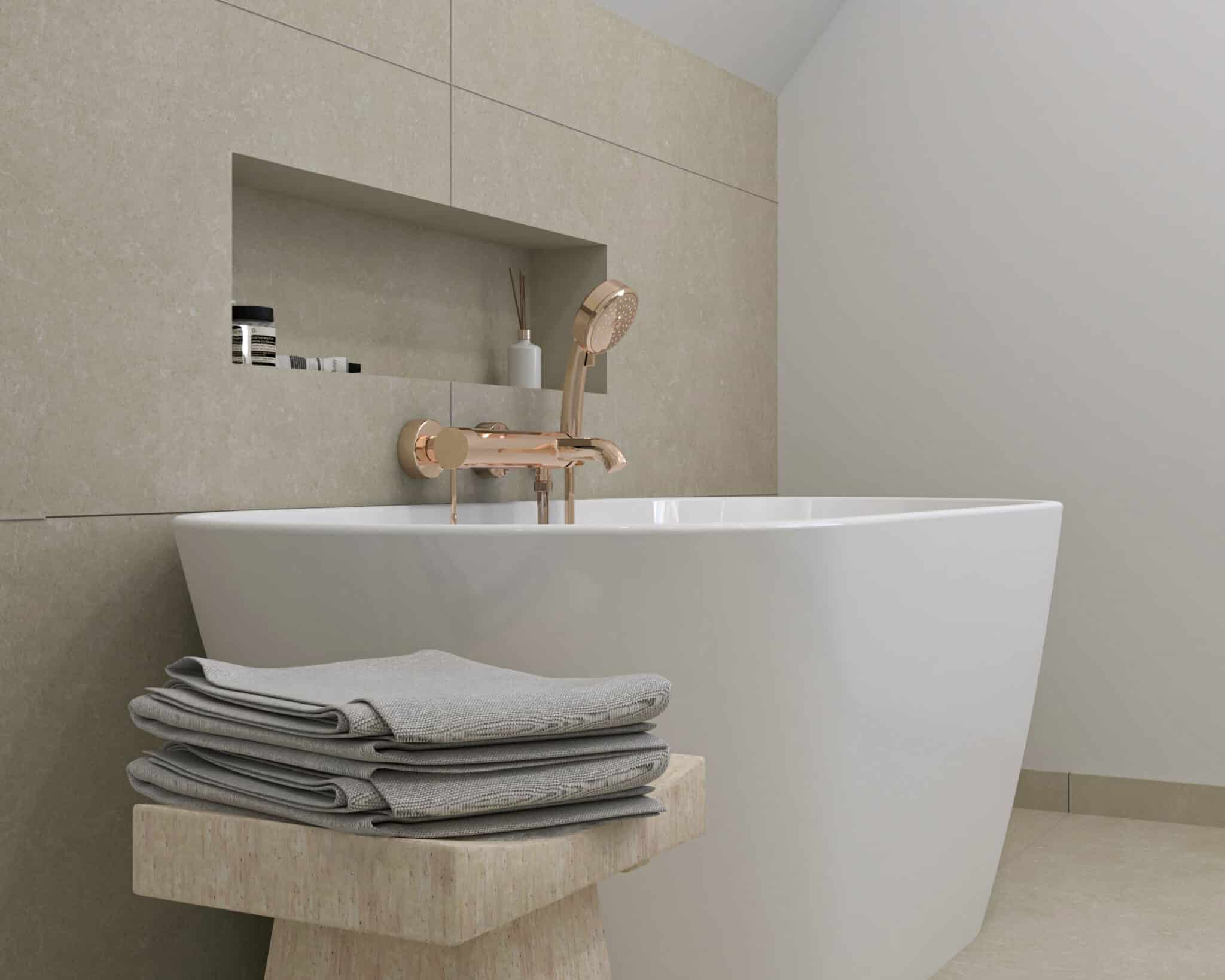 - Badeværelset blev tilpasset husets skråvægge, så badekarret kunne placeres optimalt